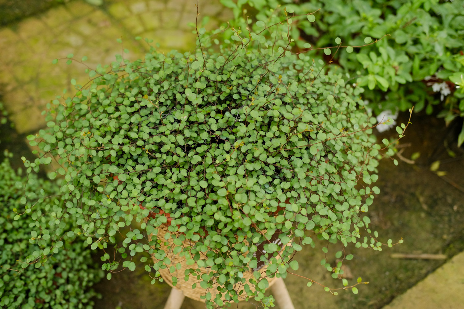 千叶吊兰的花朵很小,颜色是浅浅的绿色,没有香味。花朵很小巧,比叶子还要小很多,不仔细的看根本看不到。因此,千叶吊兰的花朵其实并没有什么观赏价值,在家庭养护当中还是以观叶为主。不过花开过后可以结种子,也可以播种繁殖,只不过不太常用。