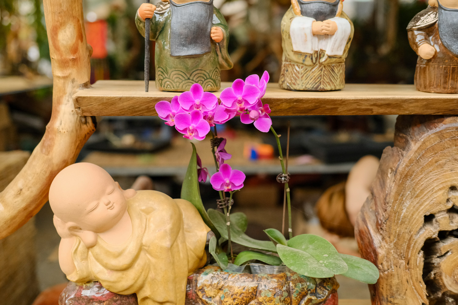 然后把晾干后的植株小心插入选取的容器内,此时可能有无法很好固定植株的问题,对此解决方法有两个。