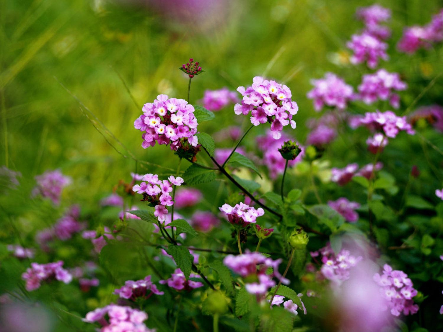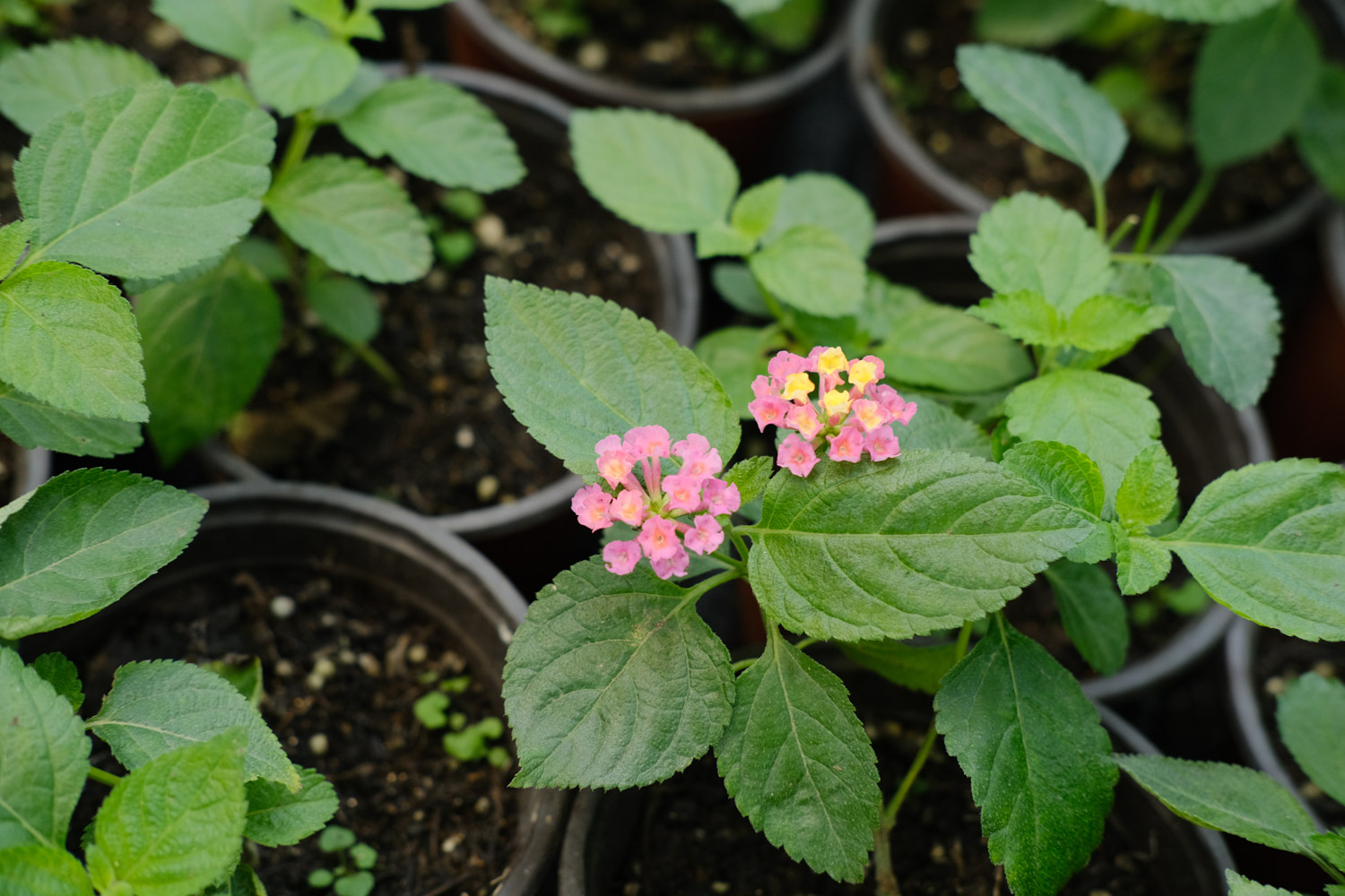五色梅全株被短毛,有强烈气味。叶对生,卵形或心脏形。在温暖的江南各省,可常年开花。它花朵虽小,直径不足1厘米,但由众多的小花密集成团,组成头状花序,直径可达4~5厘米。花序较为密集。花冠筒状,雄蕊4枚。马缨丹品种较多,以黄、红、橙黄、紫、白等花色较常见。有些品种在开花期间、橘红及红色等混杂色。作为地被观赏以黄花、紫花品种应用最广。