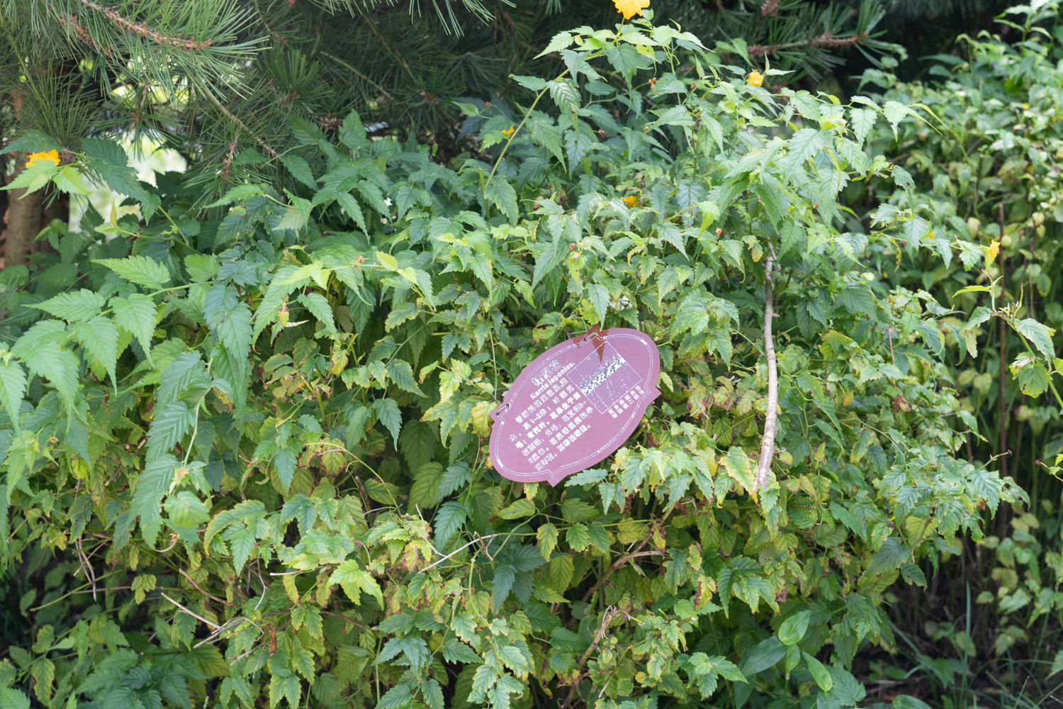 是单瓣棣棠花的一个变种,落叶灌木,高1米至1.5米,小枝绿色,有条纹,略呈曲折状。