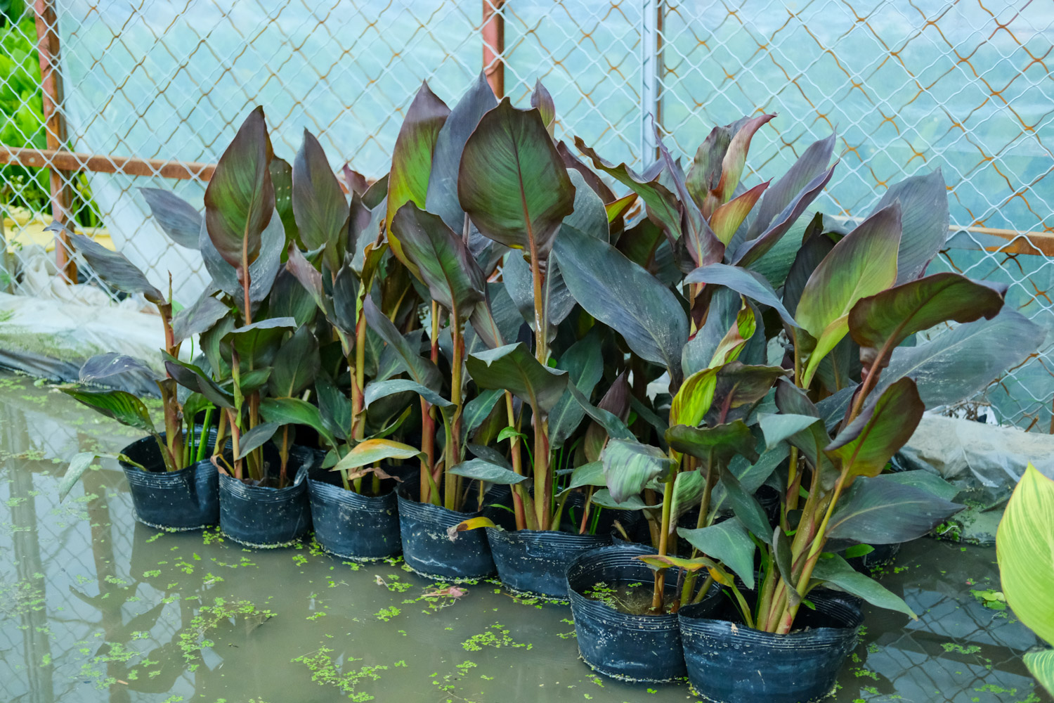 美人蕉不仅能盆栽、陆植,也可水培或沼生,在水中栽培的多见浅池沼生或利用浮基栽培,漂浮于水面上,可以净化水质,对于净化环境也有一定的帮助。