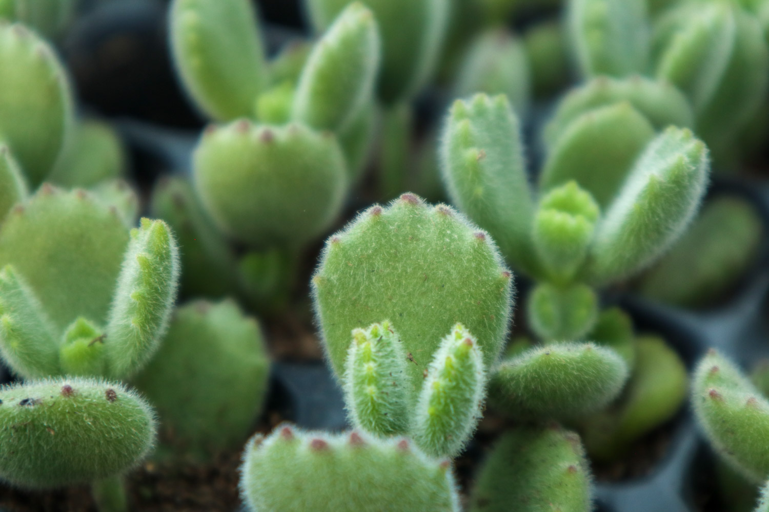 熊童子是相当受欢迎的人气植物,像初生的绒毛小熊脚掌般可爱。阳光充足的话,叶片会变得肥厚饱满。如果过于阴暗,会使茎叶纤细柔弱。