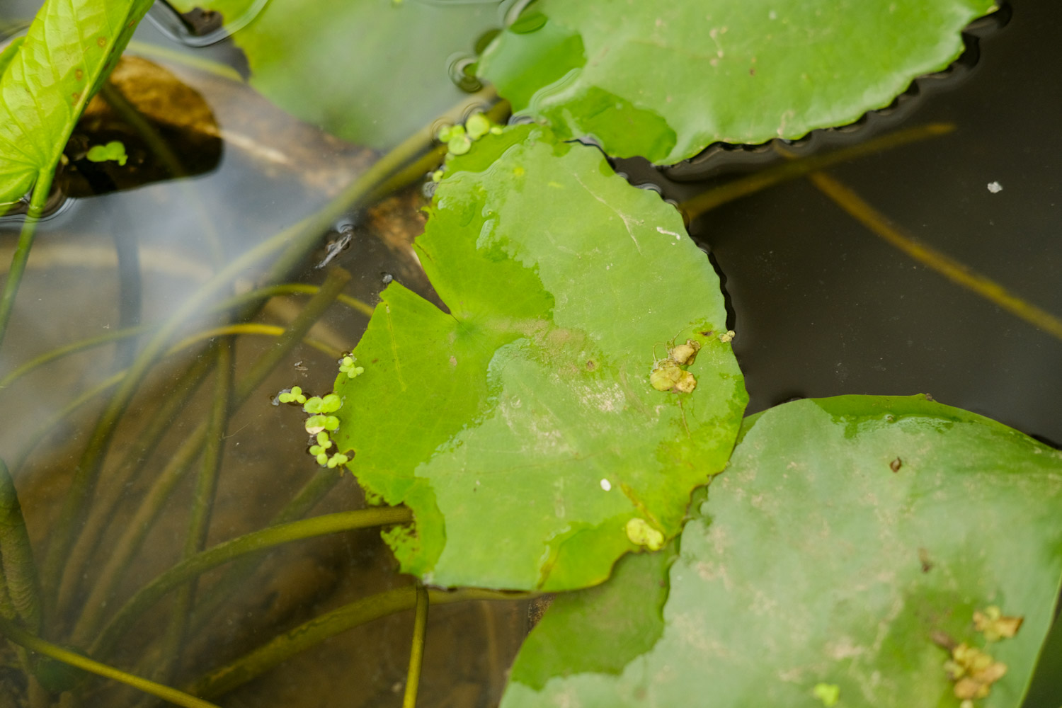 步骤6:在过一段时间,就会长出荷叶来,这时可以在水底放一些石头之类可以沉下去的东西,用来压住种子,让其固定。当然,也不可不进行固定。