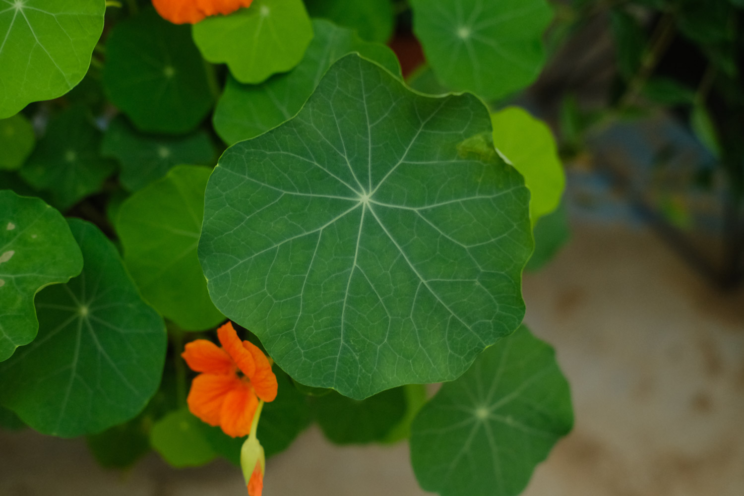盆栽的旱金莲可供室内观赏或装饰阳台、窗台,旱金莲叶肥花美,叶形如碗莲,乳黄色花朵盛开时非常灿烂,别具风趣。
