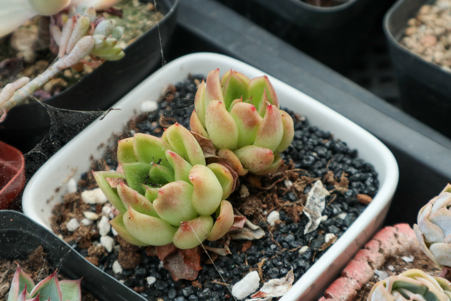 3、根系修剪:肉肉的根系长得太多太密时,要进行修剪,因为瓶里的养分有限,供养不足会影响植株生长。