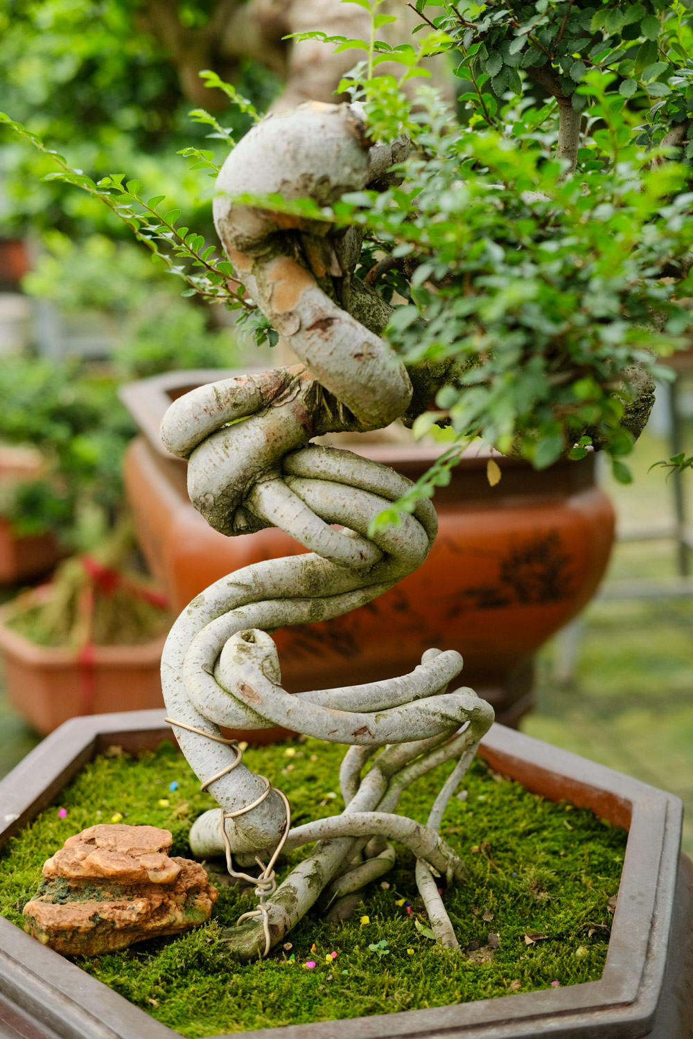 终于看到一个造型正常的了,哈哈,不过,能把老桩养得这么粗,还这么有型,得花几年啊。