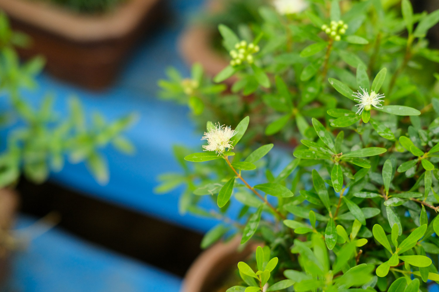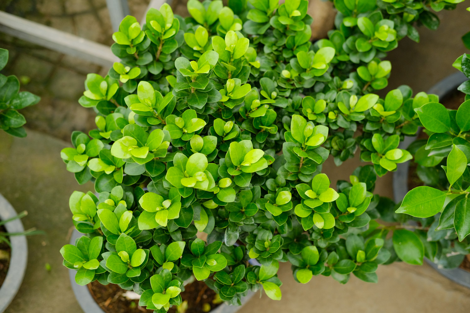 叶子的形状特别,颜色也不少呢,有嫩绿、蓝绿、黄色等等,花盆的纹络好美啊。