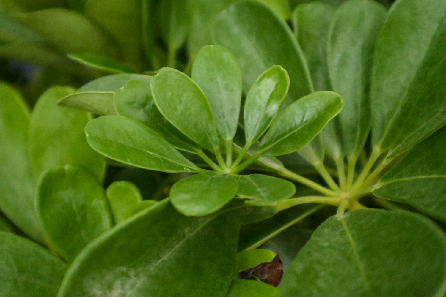 鸭脚木的幼株还未成型,在此时进行造型是最合适不过了。方法很简单,只要及时将过密的枝叶,或者生长不均匀过长的枝条剪掉即可。