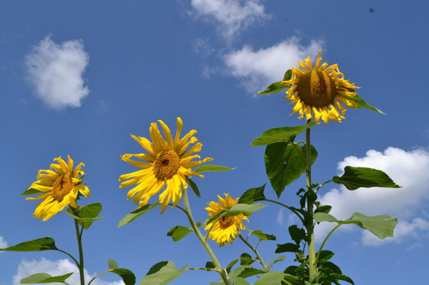 向日葵植株新叶暗黄无光泽,枝干细小黄绿,生长缓慢,但老叶无明显变化,表明浇水过多。此时应控制浇水,将植株脱盆,放在阴凉处晾干后重新栽种。注意脱盆时,不要破坏根系的土坨。