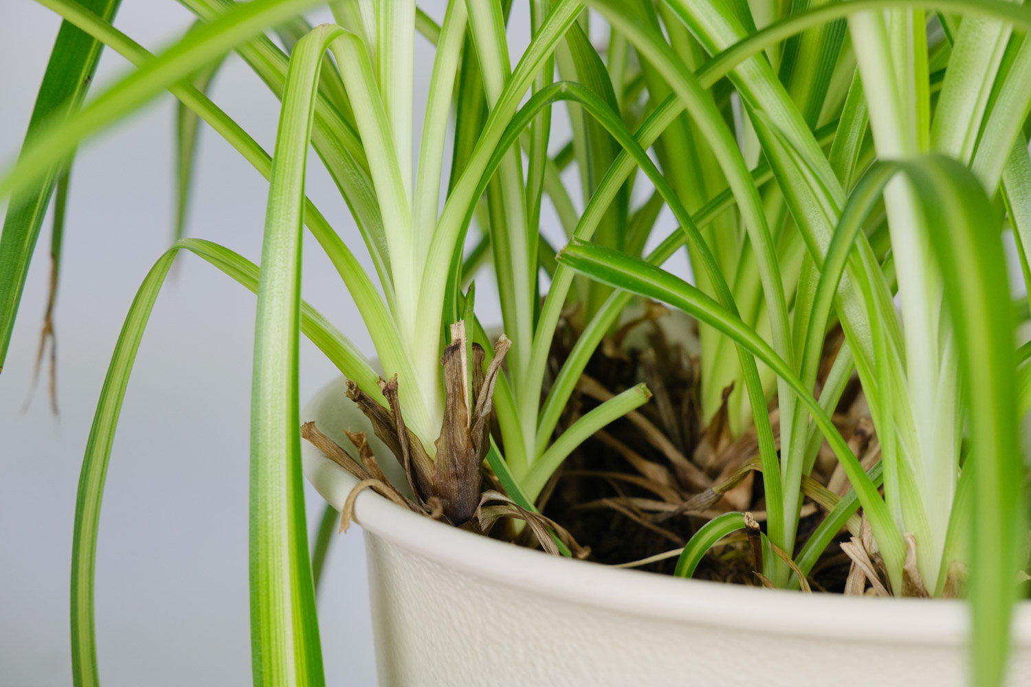 3、缺少光照:水养的吊兰非常喜光,应放在明亮的光线处多让它晒晒太阳才会旺盛生长。若是长时间见不到光照,植株易萎蔫,叶片也会发黄。要尽快补光才行,除了夏季外,都可放在光线处。