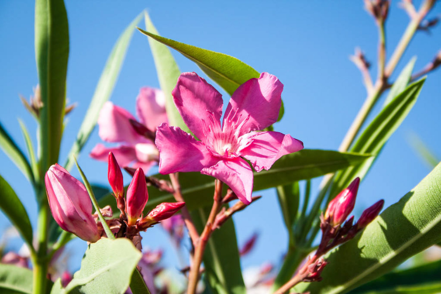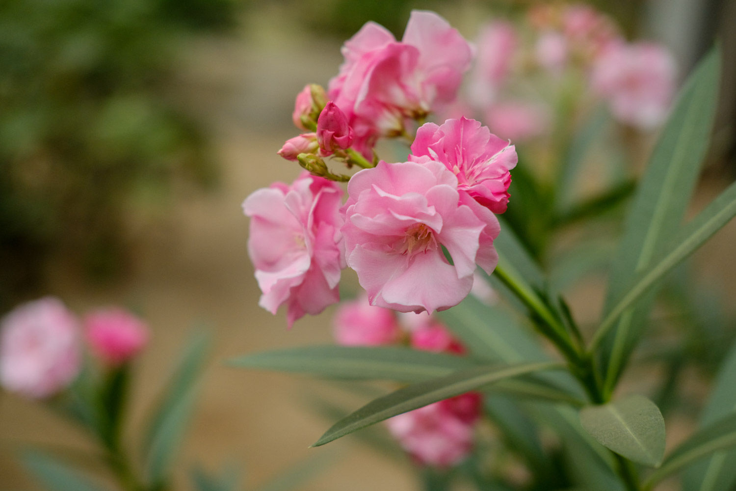 粉色夹竹桃是常见夹竹桃花型,我们日常所见的也大多是桃粉色的夹竹桃,粉色夹竹桃的花语是注意危险和咒骂。大概是因为夹竹桃的乳汁具有毒性,因此才以“危险”的花语来告诫人们,爱它但请不要亵玩它。