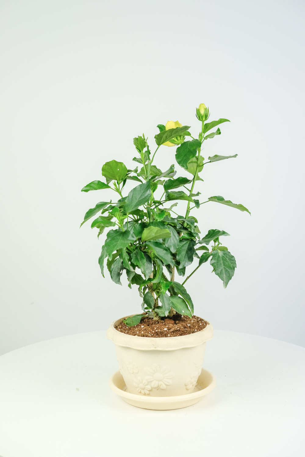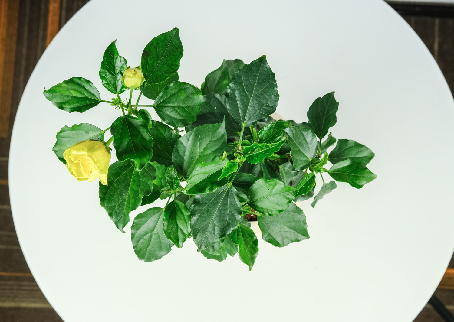 御衣黄扶桑,花朵为单瓣,颜色为杏黄色。