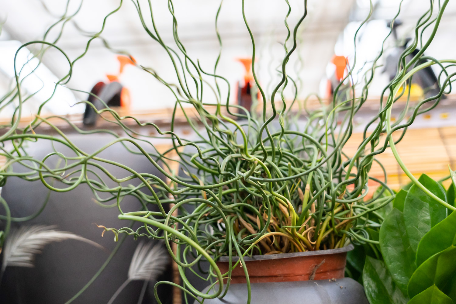 T属弹簧草的叶子的卷曲方法也有很多,有的折叠,还有的扭曲。海带弹簧草就是这种植物。
