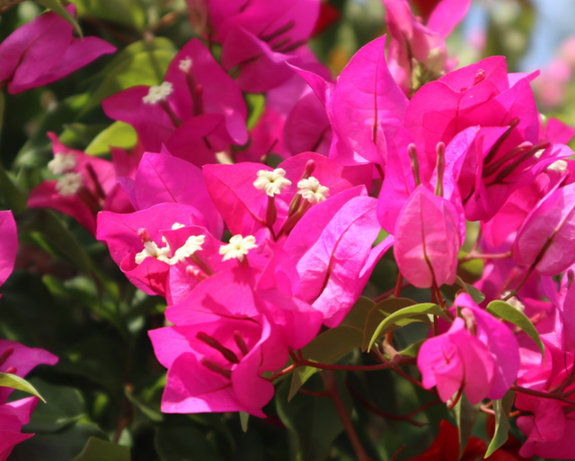 叶子花生长速度非常快,所以主要是把枯枝、枯叶、病枝、徒长枝等剪掉在植株上,这样可以减少养分的不必要消耗,所以要做好日常的修剪工作。耐修剪,做好疏剪不仅可以节约养料,还可以增强植株通风透光效果更好,对其开花有促进作用。此外,也可在开花前对花蕾进行适当的疏剪,以免花蕾过多而影响开花质量。