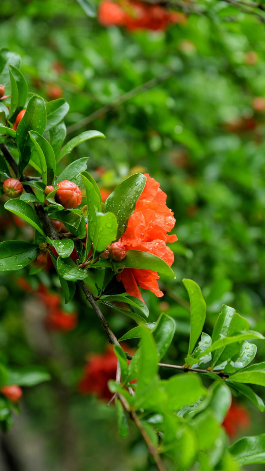 长期干旱,对石榴置之不理,或者浇水方法不对,未浇透水,造成的下部的叶片、枝干老化,顶上的叶片颜色正常,但下部会逐渐脱落。此时应适量浇水,遵循少量多次的原则,逐步补充水分,保持土壤湿润。