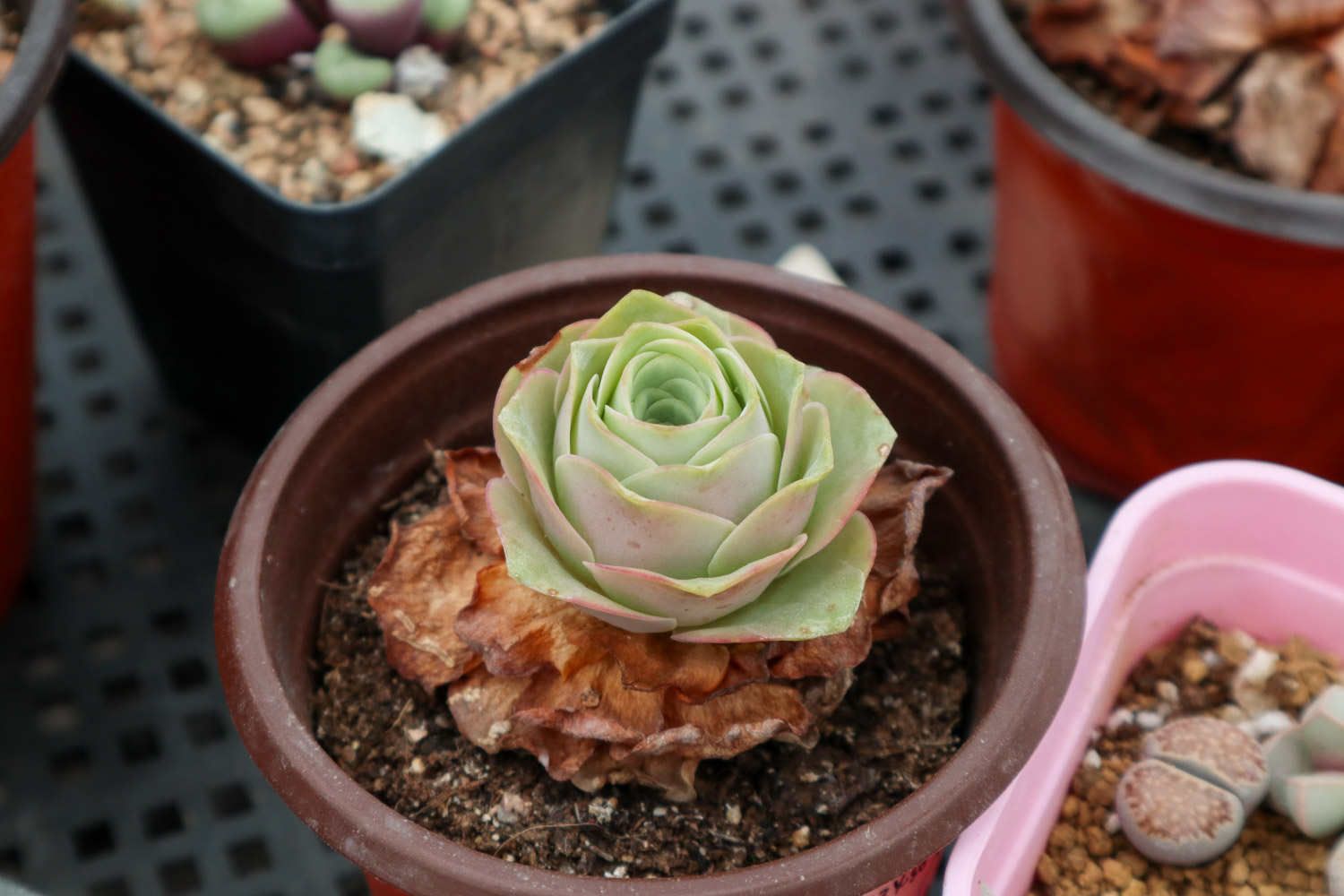 底座留在原盆里,注意伤口不可沾水,否则易腐烂,叶片之间很快就会生出许多侧芽。