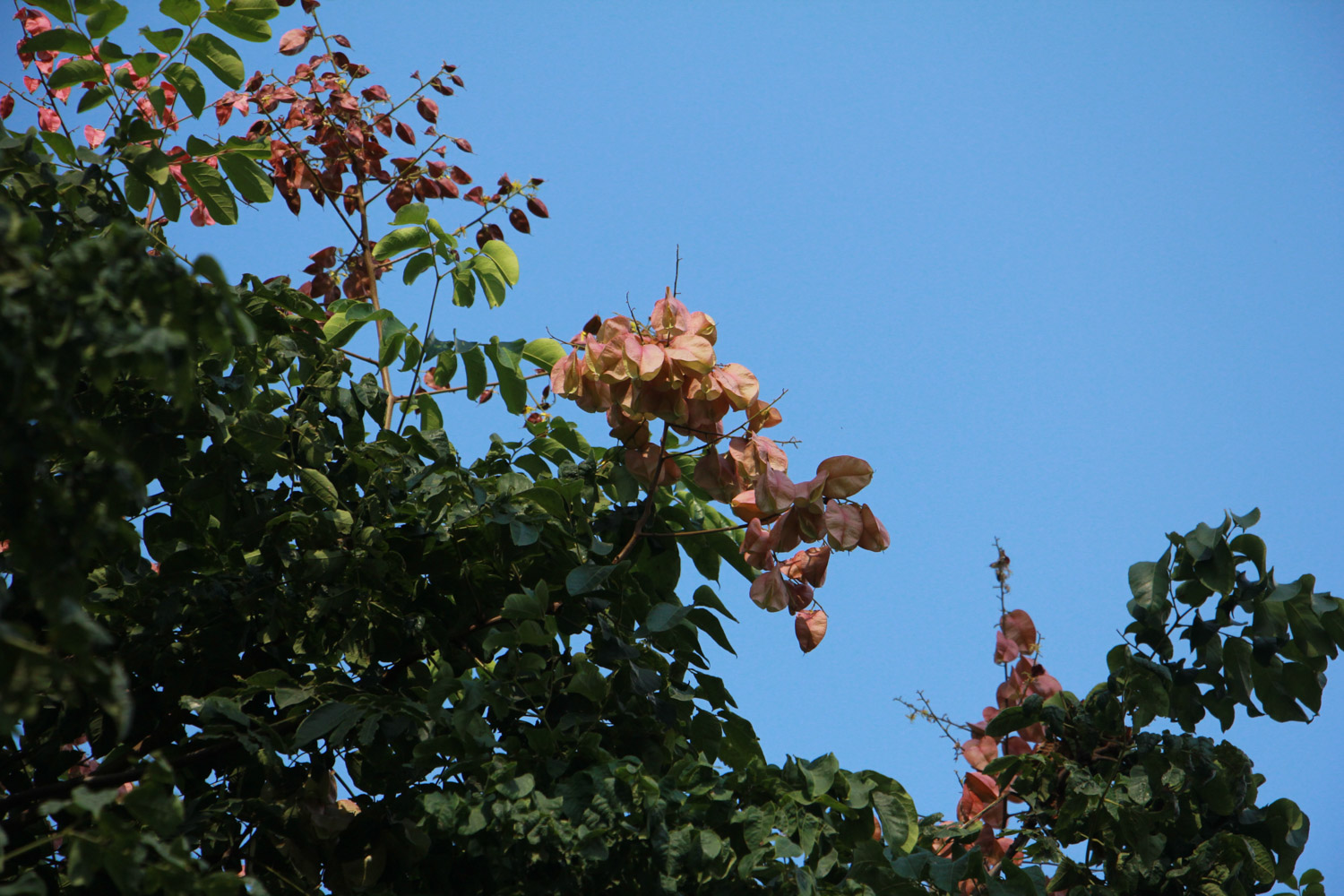 栾树在春天嫩枝一般为红色,到了夏天长满黄色的花朵,入秋之后叶子的颜色变黄,结出的果实为紫红色,很像灯笼,非常好看。