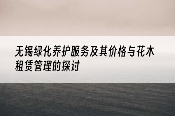 无锡作为一个拥有悠久历史文化的城市,其城市绿化建设同样不容忽视。绿化养护是保持城市绿化的关键所在,而一支专业的绿化养护施工队则是确保绿化质量的基础。本文将围绕无锡绿化养护施工队的服务内容、服务价格以及花木租赁管理等方面进行简要探讨。