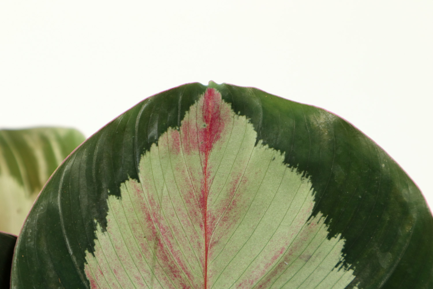 它的叶子是众多切花爱好者的首选素材。许多的切花爱好者都喜欢用它的叶子来装点花瓶或者是花束,给其它植物做陪衬。它的叶子正面看是绿色条纹状,而且光滑度很好,背面看则是紫色,而且管理方法简便,存活的时间也较长。