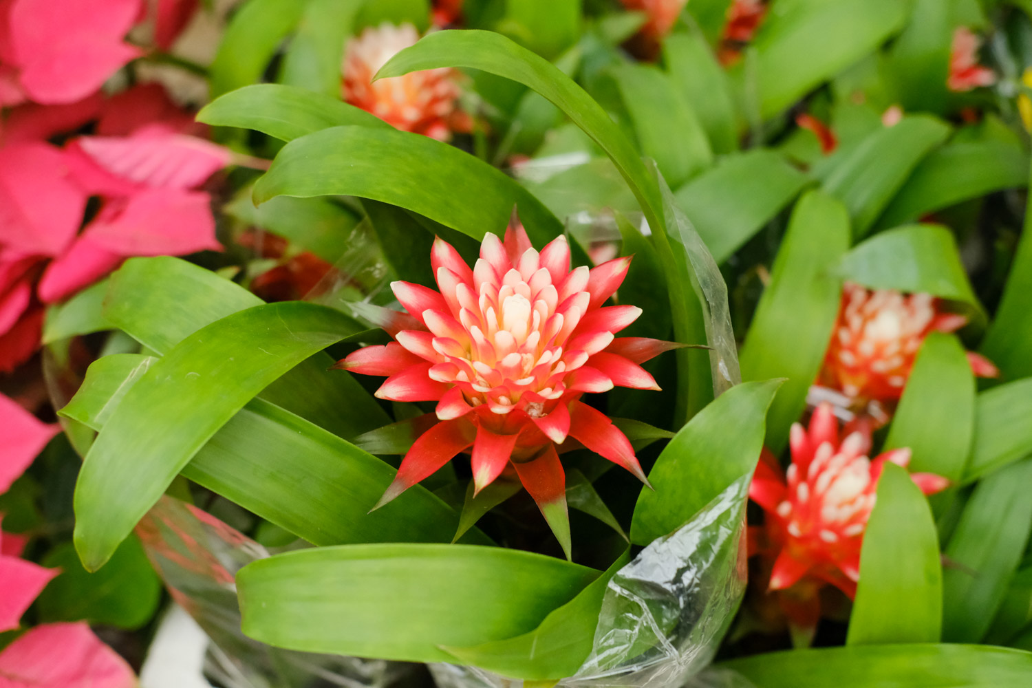 有的花友会说,那为什么没有看到底部有孽芽?花友要知道凤梨原本是热带花卉,虽然在花卉市场可以买到,但生产环境都是在温室大棚内进行的,这类花做为观赏花卉还可,普通家庭养殖是无法长久的,出现叶子干裂,发卷,发黄等情况非常正常。