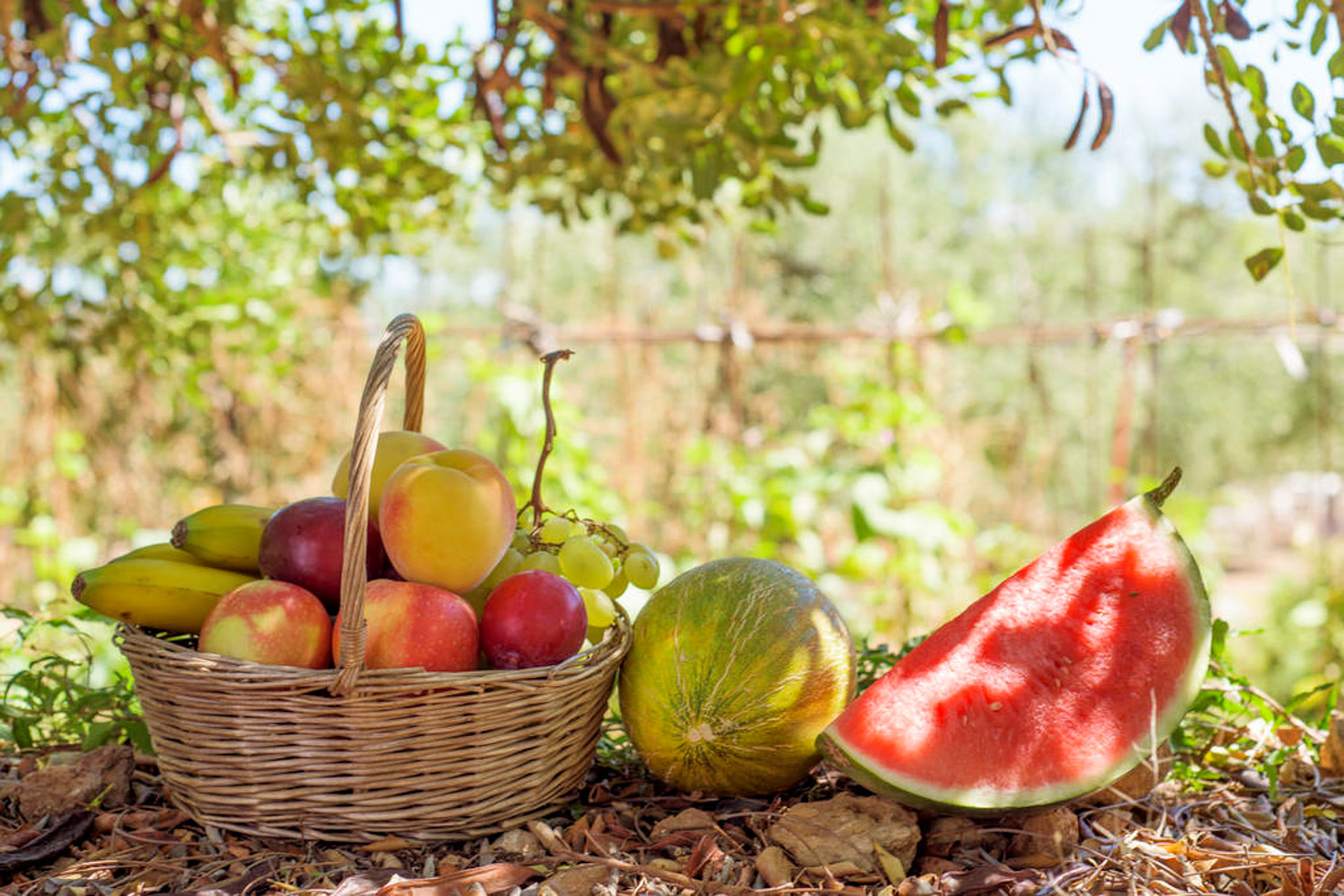 2、如果想要吃甜味的西瓜披萨,那就切一些水果,像是猕猴桃、黄桃、葡萄等,均匀地撒在西瓜上。