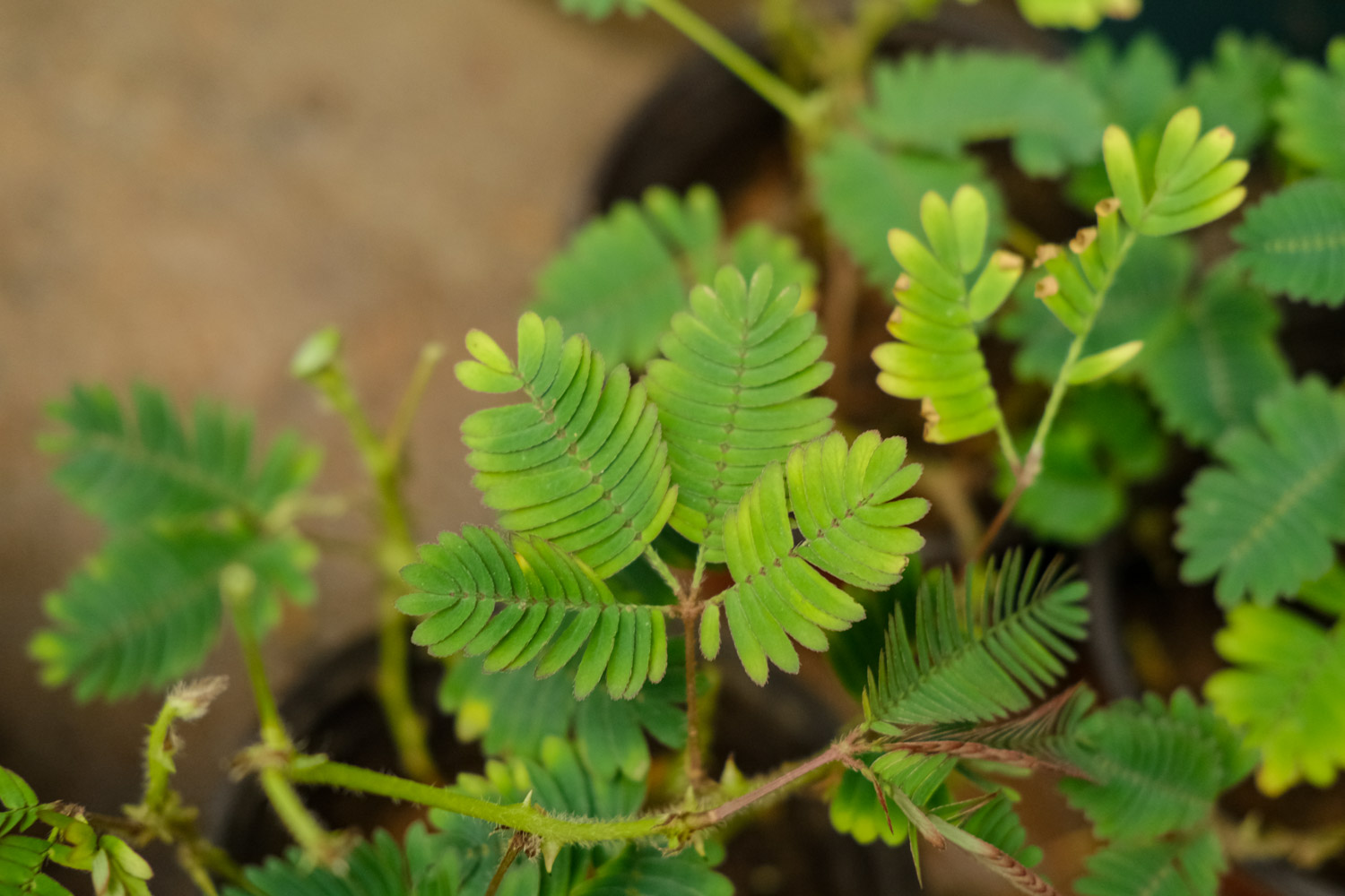 含羞草的生长过程中,阳光占了非常重要的一部分,如果没有阳光或者缺少光照,都会影响含羞草的生长。