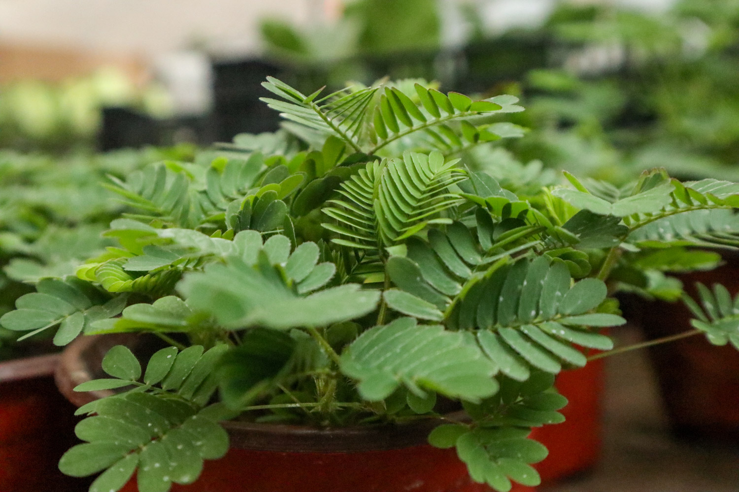 含羞草是一种低矮的草本植物。其株型秀丽小巧,给人一种文弱较小的感觉,花朵也是比较小的,颜色多为白色或粉色,素雅恬淡,具有较高的观赏价值。而且它的叶子触碰后会收缩下垂,就像一个含羞的小姑娘,非常可爱有趣。摆放在家中阳台当作观赏类植物的话,既有美化室内环境的作用,亦有让人心情舒畅放松的作用。