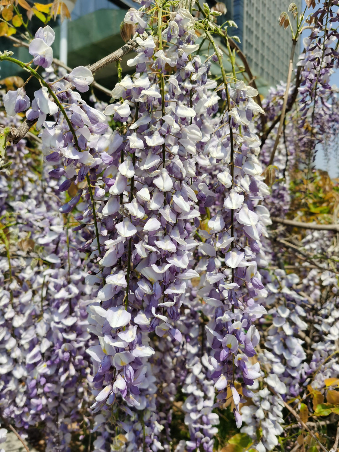 紫藤的花语有很多,包括“为情而生,为爱而亡”,“醉人的恋情,依依的思念”和“对你执着,最幸福的时刻”等等。传说中有一个紫衣女孩,她与一位白衣男子相爱,但却遭到家里人的反对,二人为爱殉情,之后化作一棵槐树,上面缠绕着一枝紫藤。,