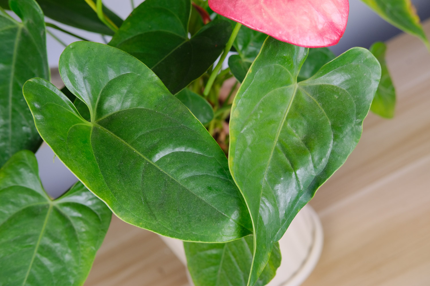 红掌的姿态优美,观赏价值很高,红掌的花色鲜艳,呈现火红的颜色,红彤彤的,花柱颜色为金黄色,叶子碧绿有光泽,养在家中非常的喜庆,能开门见红。红掌的寓意也很好,能寓意着招来好的运气、福气、财运等,也能使家中更加的兴旺。