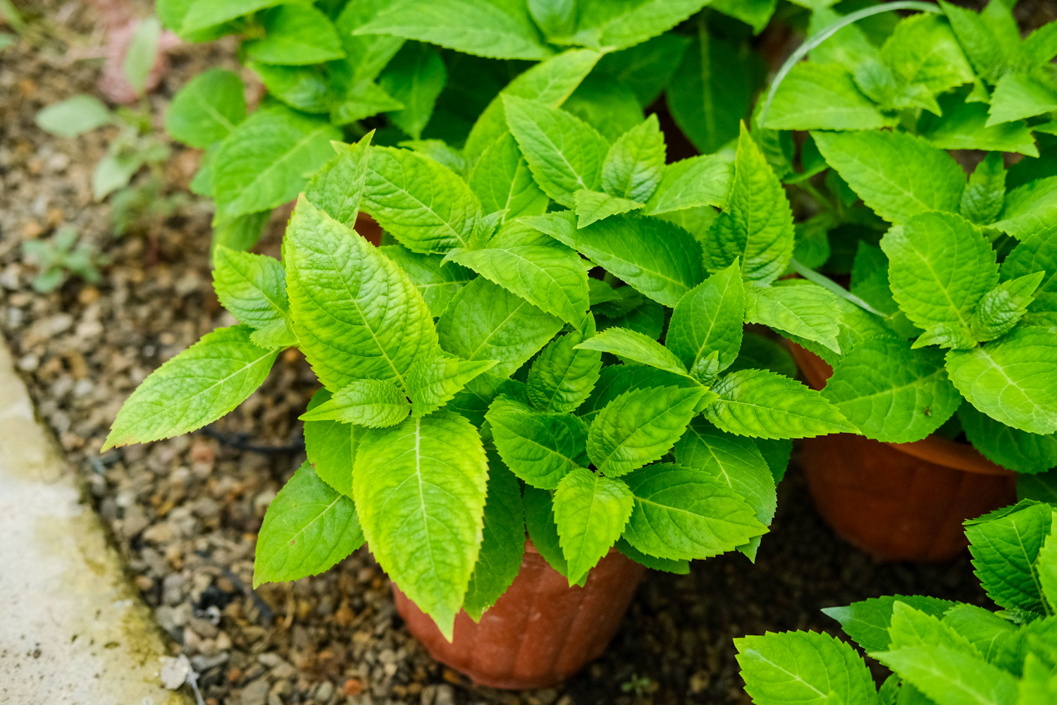 八仙花生长期对肥料的需求量较大。花芽分化前期,是非主要以氮肥为主,促进分支;分化期以磷肥为主,促进花芽生长。但是秋冬日照时间短,八仙花的生长相对缓慢,若过量施入氮、磷肥,会造成植株营养过剩,生长受到抑制,花芽难以分化,影响第二年开花!