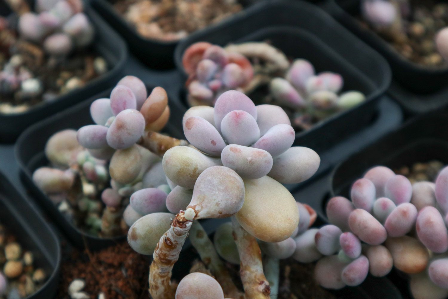 桃之卵叶片不红,粉粉的桃蛋变成了绿蛋,主要是由于过度光照造成的。阳光的照射不仅会给桃之卵带来紫外线,还会加升桃之卵周围环境的温度,所以要注意散光照射为佳;冬季白天全光照,晚上可收回房间进行保暖。,