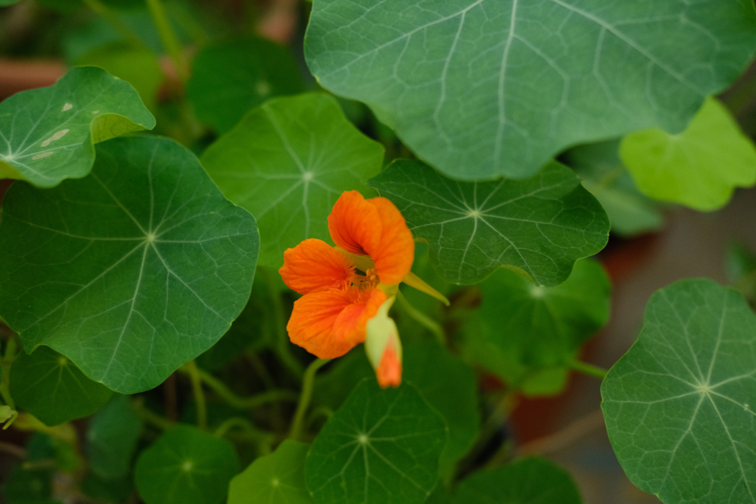 控水也可以抑制旱金莲的徒长。见干见湿的浇水方式最适合旱金莲。徒长之后,可以把浇水时间间隔拉长,5-6天浇一次都可以。