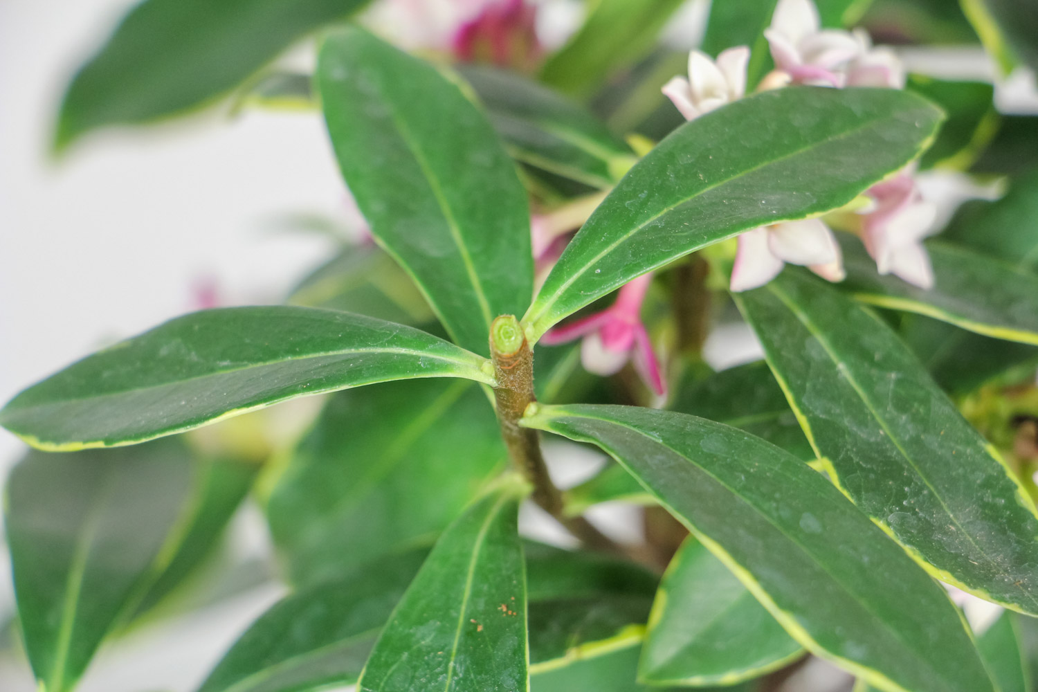 金边瑞香的开花时间在春末冬初,所以秋冬的养护很重要,阳光不足,导致植株自身储备的养分不足,春季来临难以快速生长,更无法产生开花所需要的养分。
