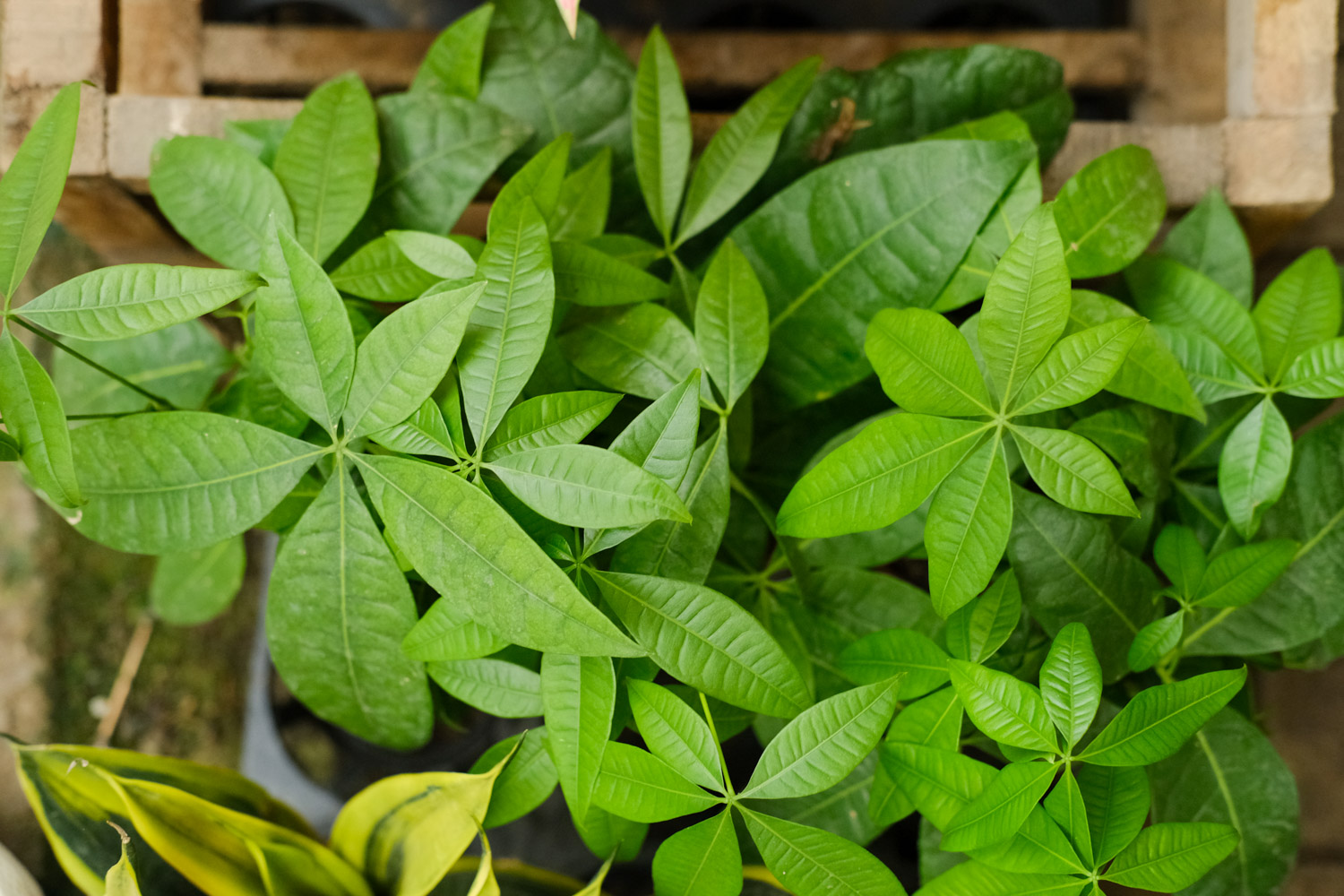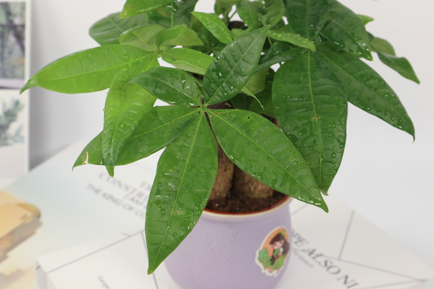 3.冬天温度低,千万不要往发财树叶片上喷水,如果空气太干燥,可以往地面洒水提高湿度。