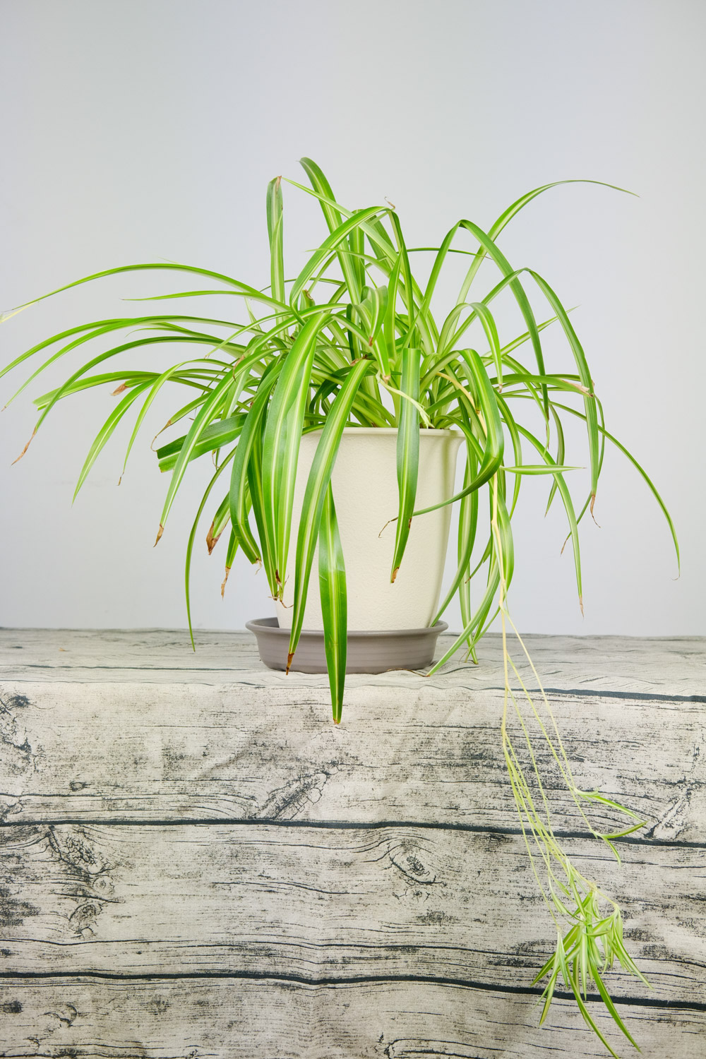 吊兰喜好湿润的环境,但不宜多浇水,这样会使植株的跟不腐烂,进而引起叶子发白。
