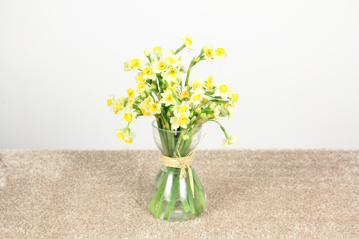 其次,如果在室内温度较高并且不见阳光的话,叶子很容易倒伏,一般当水仙花的叶子长到5cm左右的时候,可以将其放在温度比较低的地方来养护,抑制植株的徒长。