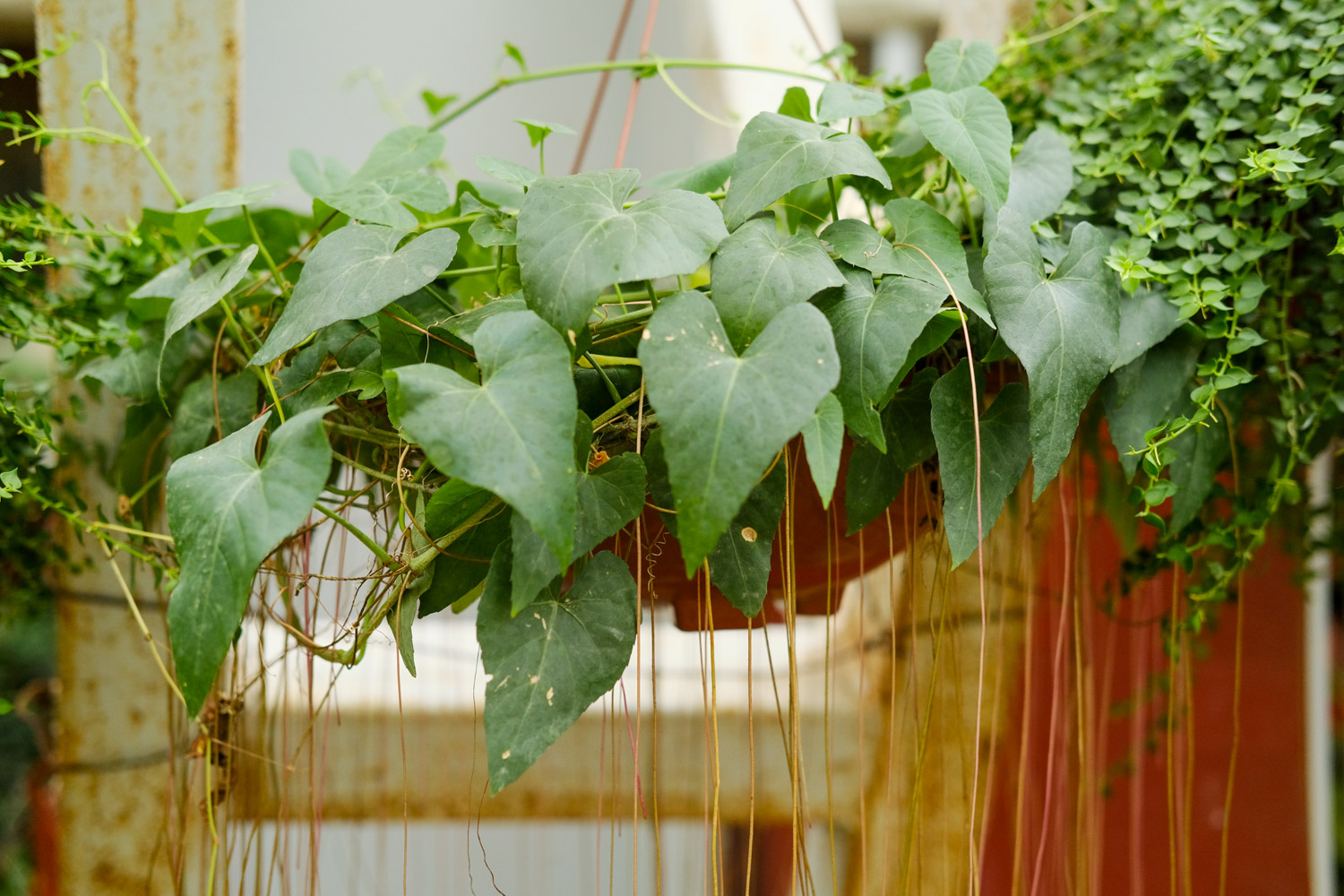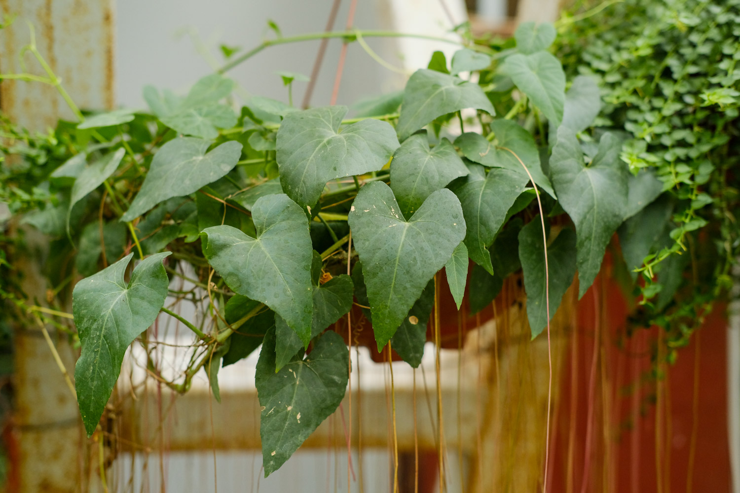 锦屏藤,看看它的名字就能够想象到它的外观,像一架锦屏,又像一帘窗纱。它的枝条非常纤细,可以延伸到地上,所以象征着无穷尽的生命力,寓意非常好。另外,它的花朵颜色非常淡,具有清新、素雅之美,所以许多人会选择种植。但是种植者们经常会发现一个问题,植物叶子背面出现了黑点。今天我们就来了解一下,用什么办法可以防止这种情况。,