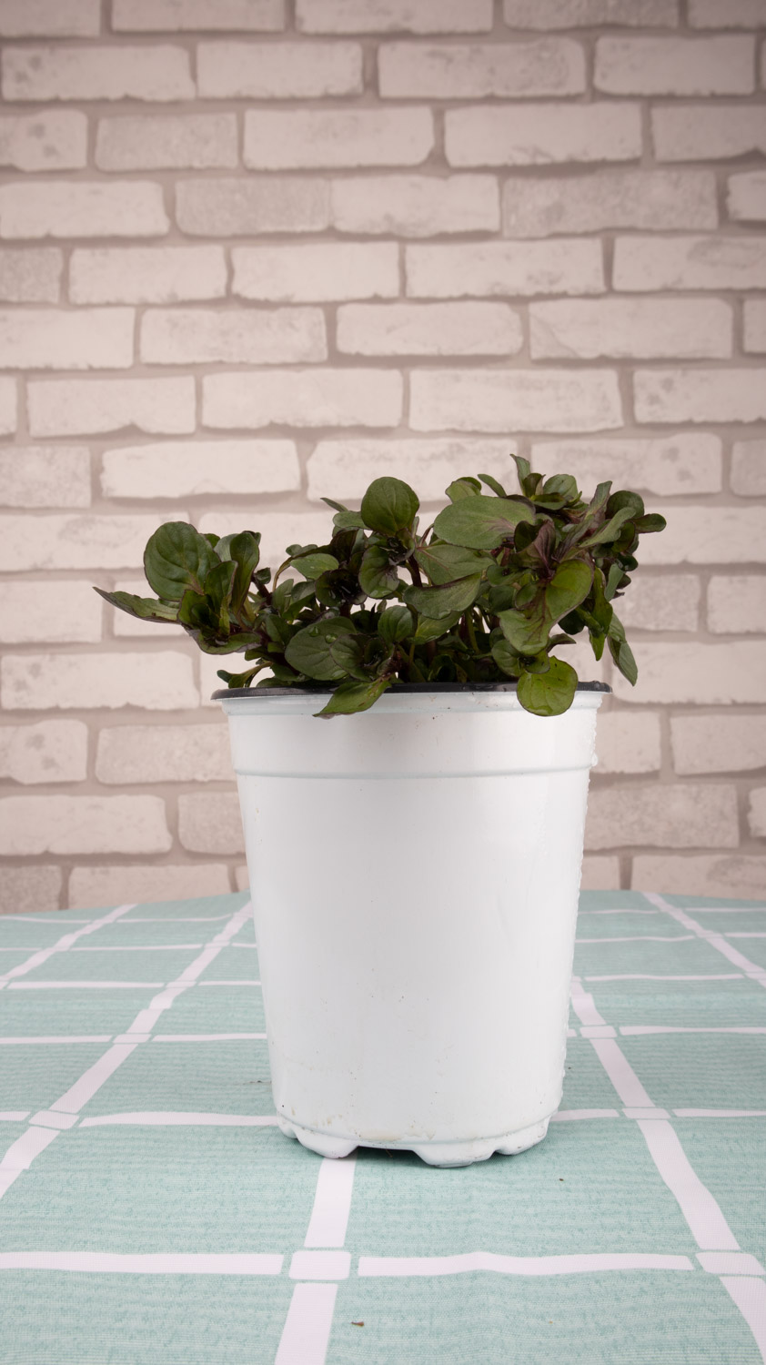 薄荷叶片表面有一层绒毛,浇水的时候容易在叶片上存水,长时间的浸泡会使新芽枯死。