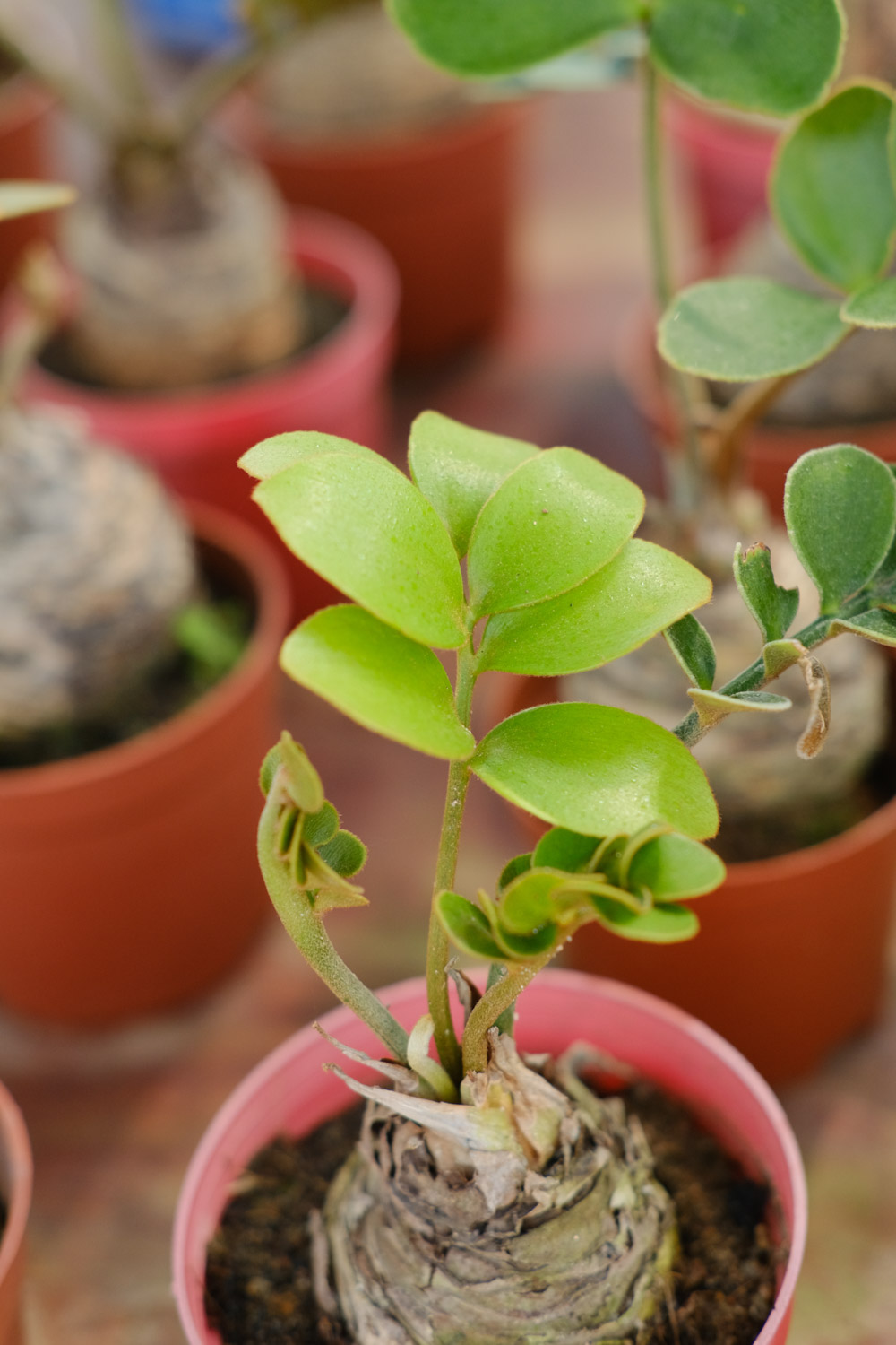 金钱树在土壤里有一块块茎,若发现腐烂问题把它从花盆取出去除烂根和原有的土壤,块茎取出轻轻挤压,判断块茎是否腐烂。