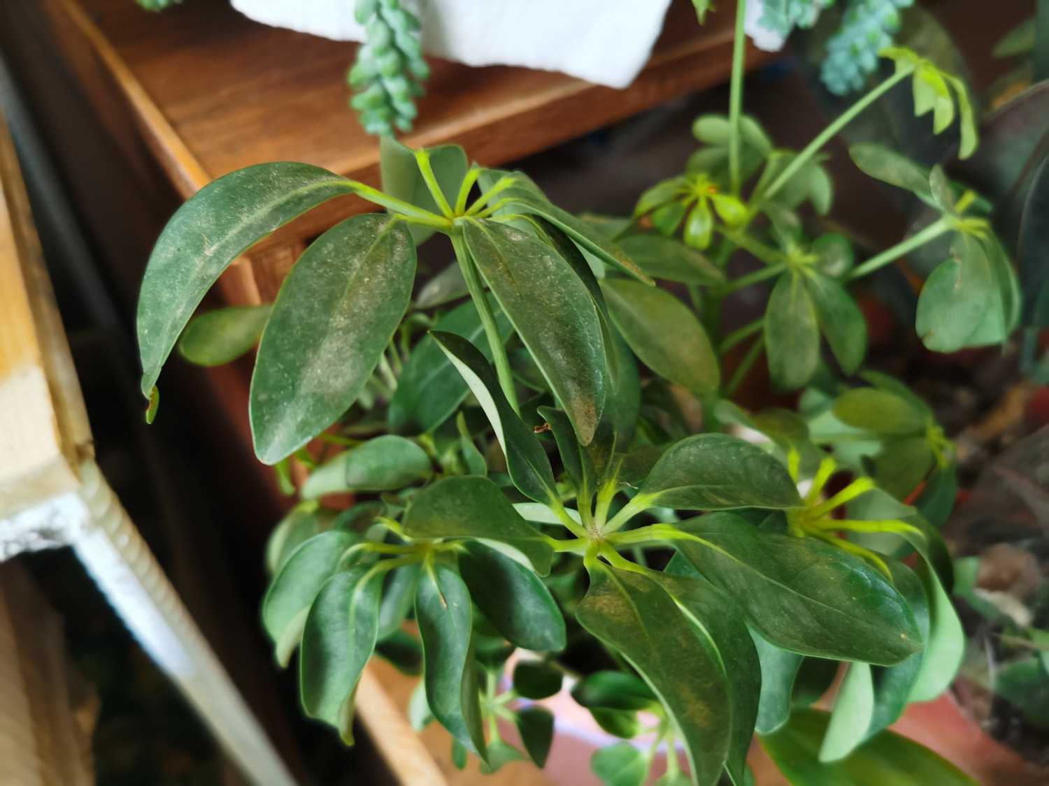 鹅掌木被冻伤后要第一时间搬到室内,并控制温度在8-10℃左右。检查一下植株被冻伤的情况,将冻坏的枝干剪除就可以了。在冬季一定要保证每天4个小时的光照,节制性的进行浇水,且最好是在中午进行,还要注意通风,在晴天的时候要多多开窗。,