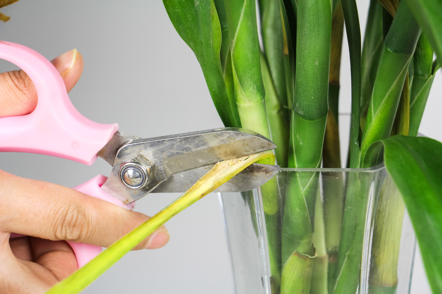 其实,对于水养富贵竹杆发黄的现象很好解决,只要改掉之前的不当养护方法,它就会逐渐好转。在养护的过程中一定要用干净的水养,并且还要在水变脏后及时更换。平时养护的位置要有良好的通风性,不要放在电视、电脑旁边,也不要放置到强光照射的地方,在夏季如果阳光强烈就要注意遮挡。另外,还要在水里添加适量的营养液,以免缺少养分而影响它生长。