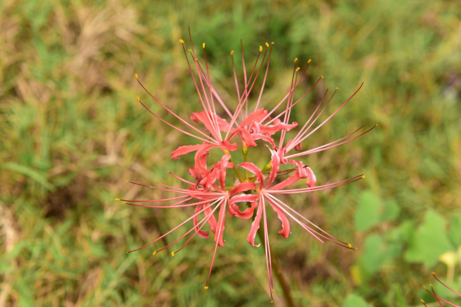 彼岸花的叶子一般在秋季长出,形状为狭带状,长度在15厘米左右,宽度只有0.5厘米。顶端比较钝,颜色为深绿色,中间有粉绿色带。从外形上看,它的叶子有点像蒜叶,而且为丛生,质地为肉质,表面有白粉。