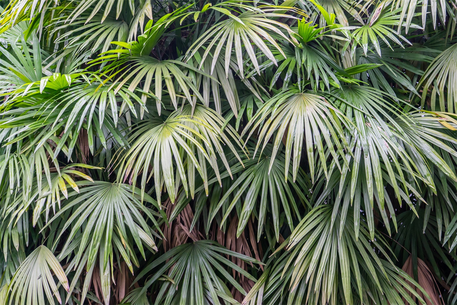 多裂棕竹是一种丛生灌木植物,叶片为扇形,叶掌状深裂,裂片为16-30片,边缘及肋脉上具细锯齿。分布在广西西部及云南东南部,可作绿化材料。