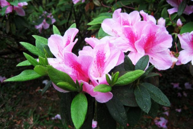 如果我们的杜鹃花到了花期还是只长叶子不开花,那么我们可以判断为养分过剩而导致的枝叶徒长而影响到花蕾的分化。这种情况下我们需要减少使用氮肥,避免过多的养分集中在枝叶中。