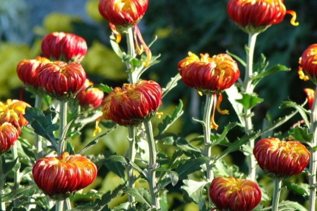 一旦发生叶子蔫了、枯萎的现象,我们就需要将其放在半遮阴的环境中,保证光线充足的同时也要防止烈日曝晒。这样,菊花就会慢慢的恢复正常的生长。
