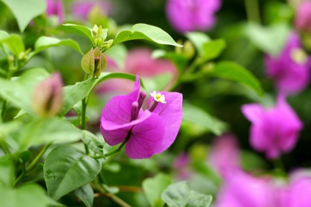 三角梅,学名叫光叶子花,别称有宝巾花、三角花、紫三角、簕杜鹃、小叶九重葛、紫亚兰等。有些花友会发现,自己养殖的三角梅开花时间非常短或者很容易掉落,这是为什么呢?这其中涉及到三角梅的花期管理问题,比如说三角梅花期怎么浇水,花期怎么施肥等等。今天花儿谷就来给大家介绍一下三角梅的花期管理方法吧。