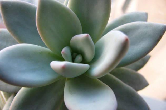 限制霜之朝开花的方法就是及时的剪掉花葶,随时观察哪些叶子底下有长出花芽的,可以用手抹掉,这样就可以保持霜之朝整体植株的形态之美。