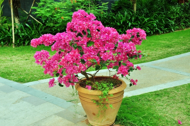 三角梅的枝条长得过于密集或者徒长过于严重会导致其生长不良,大量的养分消耗是不利于其开花的,因此我们需要适时的对其进行修剪,修剪需要处理掉一些长得过于密集和突兀的枝条,一些不利于造型的徒长枝条需要及时修剪,防止养分流失的同时可以增强植株内部的通风和光照,预防病虫害侵袭同时可以促进花开。