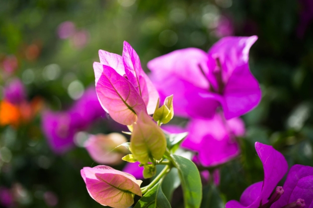三角梅是一种喜光的植物,光照不足会导致其只长叶子不开花,如果是这个原因引起的,我们就要让其增加光照,至少每天日照时常在6-8小时左右为佳。不管是春夏秋冬,充足的光照才可以让三角梅长得枝繁叶茂开花茂盛。