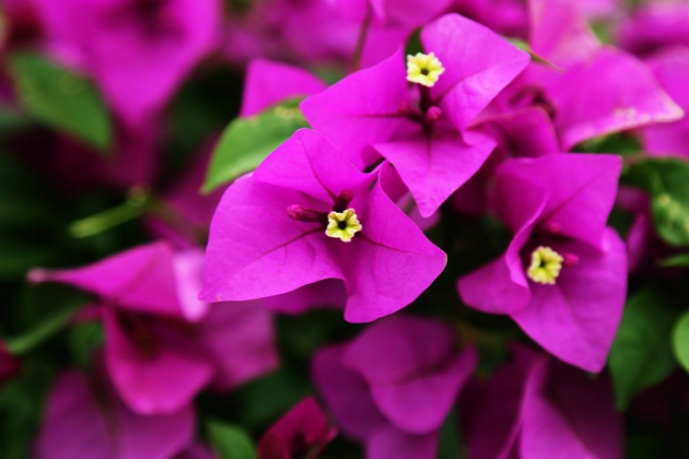 水分与养分是三角梅生长的必须,如果浇水过量或者长期不浇水都会导致其生长不良,比如说花期前浇水过多则会导致其只长叶子不开花,所以在花期之前需要减少浇水,但是需要注意,减少浇水至少控制水分过量,而不是不浇水,如果浇水太少也会抑制其正常开花。再有就是养分了,充足合适的养分可以促进三角梅开花,错误或者不合适的养分则会适得其反。在花期之前我们需要补充多一些磷钾肥,少使用氮肥,这样就可以促使其开花了。